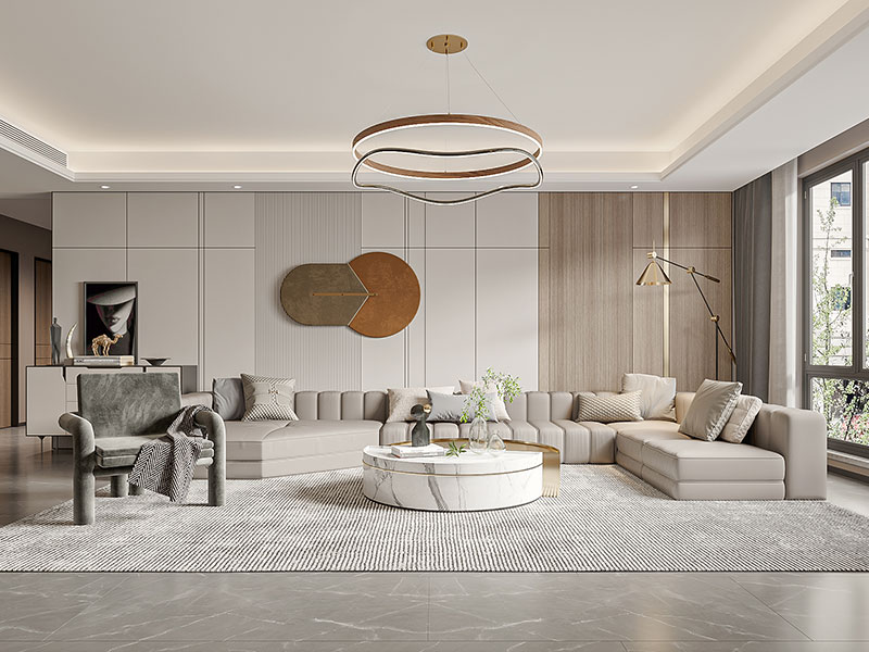 以米白、深灰的低饱和色调定克制基调,浅棕与木饰面注入温暖质感,皮质、石材的点缀强化精致度。冷暖材质碰撞出层次,却无冗余装饰,让空间在简约形制里,既显整洁秩序,又藏生活温度,避免寡淡感。