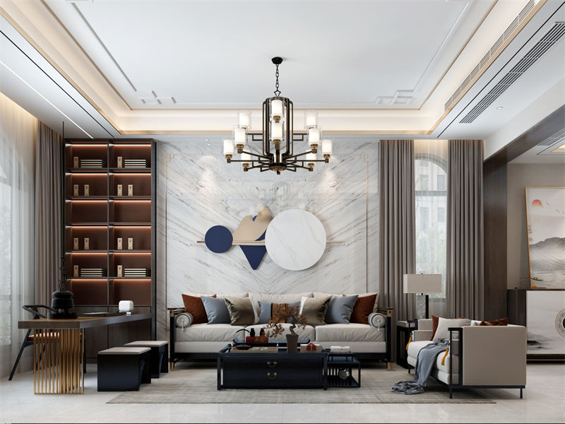 不需要在客厅功能上做减法,可以利用客厅面积的宽度或纵深腾出一部分空间来做书房,分出两种功能,互不影响。