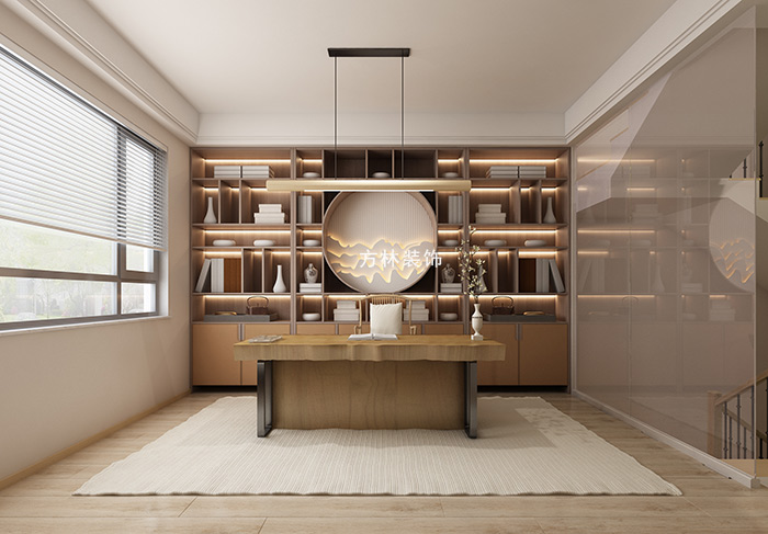 本案聚焦新中式风格,以木色为核心色调,搭配中性色与金属细节。空间中中式对称美学与现代简约设计碰撞,文化摆件与质感材质呼应,既满足社交、休憩、收纳等多元功能,又传递东方雅致格调,诠释传统与现代交融的居家美学。