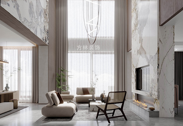 开放式布局拉通区域联动,细节上,造型灯具、软装肌理与景观采光的适配,强化生活质感。