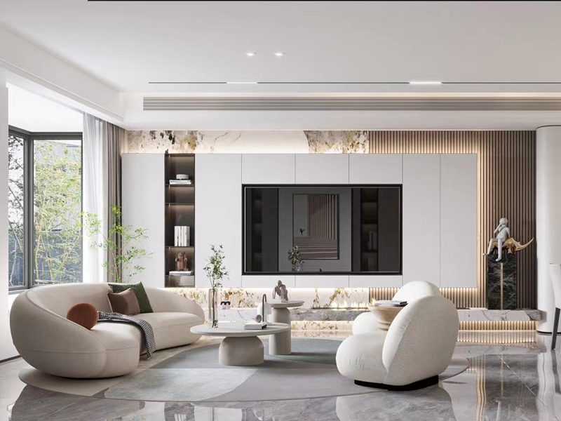 以米白、深灰的低饱和色调定克制基调,浅棕与木饰面注入温暖质感,皮质、石材的点缀强化精致度。冷暖材质碰撞出层次,却无冗余装饰,让空间在简约形制里,既显整洁秩序,又藏生活温度,避免寡淡感。