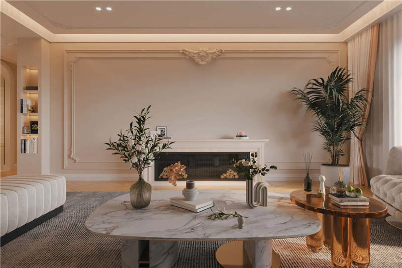 以米白、深灰的低饱和色调定克制基调,浅棕与木饰面注入温暖质感,皮质、石材的点缀强化精致度。冷暖材质碰撞出层次,却无冗余装饰,让空间在简约形制里,既显整洁秩序,又藏生活温度,避免寡淡感。