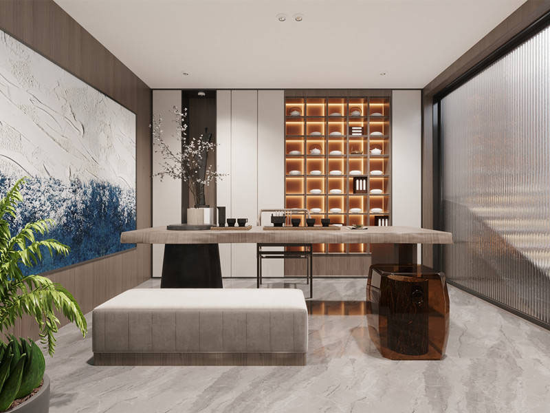 可以将茶室与书房相结合,让品茶和阅读这两个活动更相契相合,彰显居住空间的品质和文化氛围。