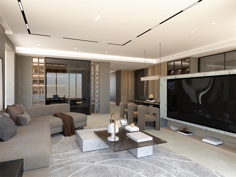 融合轻奢细节,通过浅木、低饱和色系与质感材质的搭配,奠定柔和松弛的空间基调。