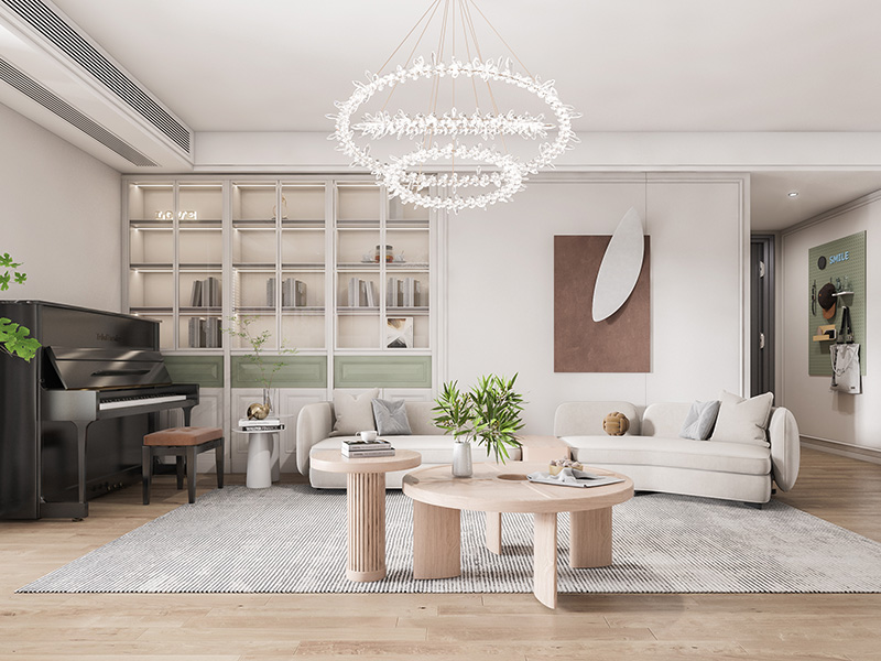 融合轻奢细节,通过浅木、低饱和色系与质感材质的搭配,奠定柔和松弛的空间基调。