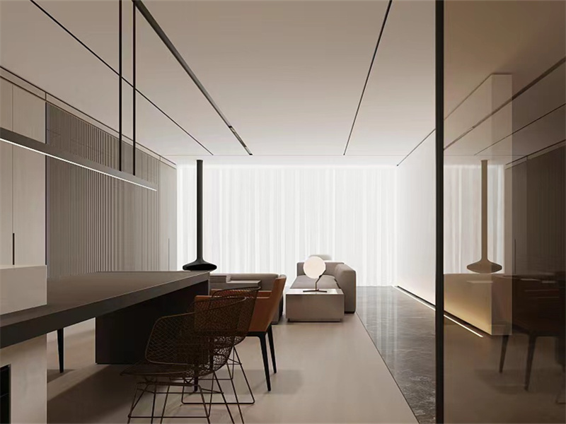 本案是平层户型,基于极简风格的家居设计理念,对空间布局、色彩、材质和光影等均做简化处理,呈现和平宁静的基调,诠释生活的美好。