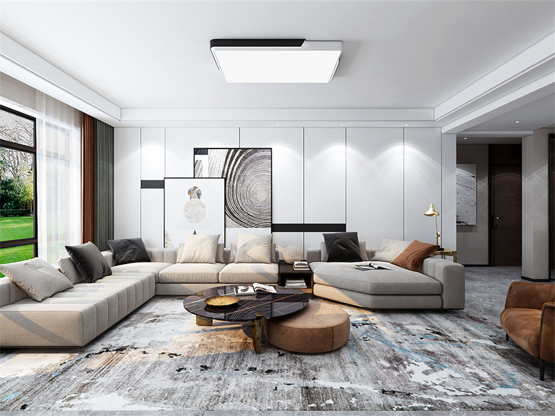本案是大户型,定位于现代风格,运用当下的审美和技艺,摒弃繁杂的装饰元素,采用简练线条搭配低调质感软装等,打造简雅惬意居室,体现简约的生活方式。