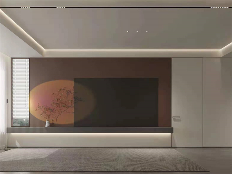 从居家生活方式看,这里是社交休闲核心区,朋友相聚喝茶聊天。卧室门的隐藏式设计,与电视墙相融合,既增加私密性,又彰显视觉整体性。