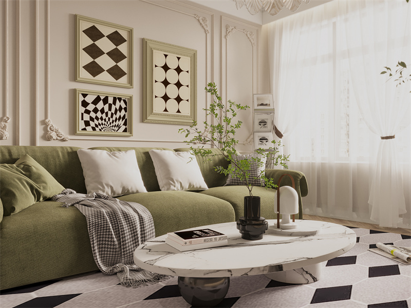 以柔和奶油色为底,搭配浅灰与黑白几何元素,营造轻盈温馨氛围。简洁的悬浮电视柜、圆润茶几,适配日常观影、休闲场景。绿植点缀增添生机,阳光透过窗纱洒落,让家人围坐、朋友小聚都满是松弛感,诠释奶油风的治愈与自在。