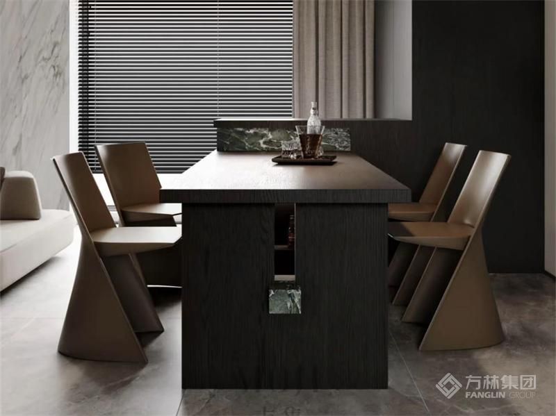 以米白、深灰的低饱和色调定克制基调,浅棕与木饰面注入温暖质感,皮质、石材的点缀强化精致度。冷暖材质碰撞出层次,却无冗余装饰,让空间在简约形制里,既显整洁秩序,又藏生活温度,避免寡淡感。