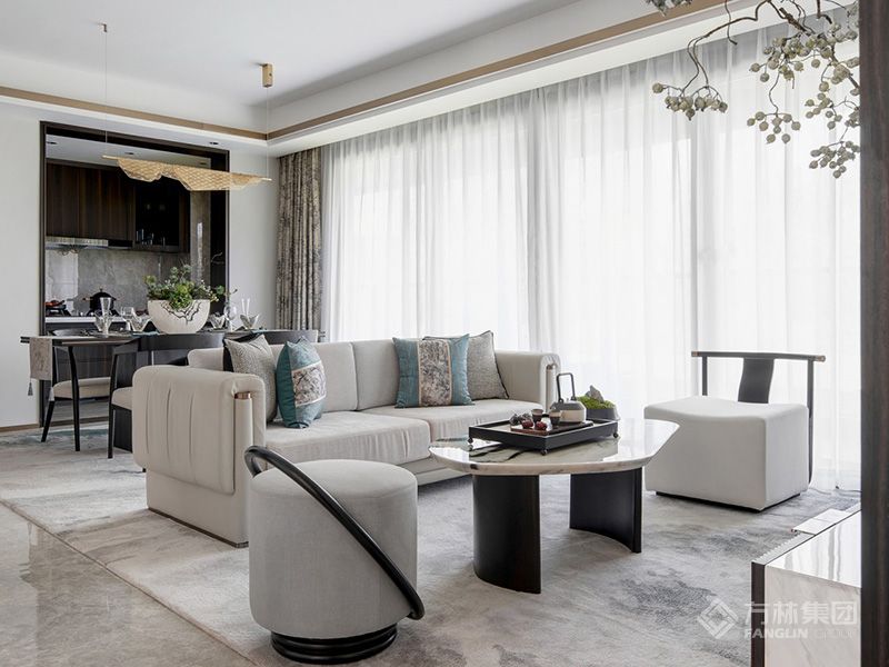 本案以轻奢风格为内核,米灰、暖棕为柔和主调,通过金属线条、皮质、玻璃等质感材质传递精致感。从客厅的格调社交、餐厅的仪式饮食,到主卧的静谧休憩、客卧的多元实用,均在中性色调基底中融入轻奢细节,诠释兼具格调与烟火气的轻奢居家美学。