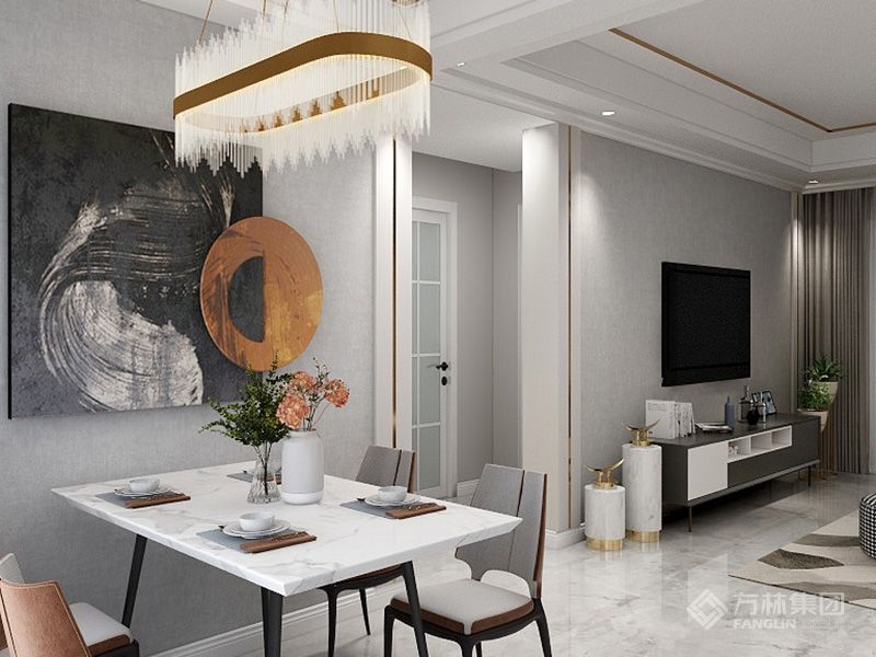 本案以轻奢风格为内核,米灰、暖棕为柔和主调,通过金属线条、皮质、玻璃等质感材质传递精致感。从客厅的格调社交、餐厅的仪式饮食,到主卧的静谧休憩、客卧的多元实用,均在中性色调基底中融入轻奢细节,诠释兼具格调与烟火气的轻奢居家美学。