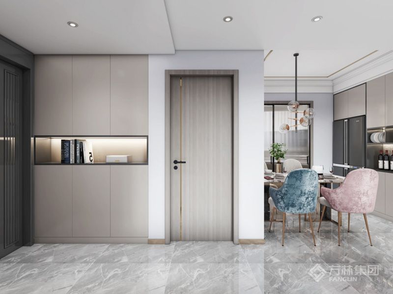 以米白、深灰的低饱和色调定克制基调,浅棕与木饰面注入温暖质感,皮质、石材的点缀强化精致度。冷暖材质碰撞出层次,却无冗余装饰,让空间在简约形制里,既显整洁秩序,又藏生活温度,避免寡淡感。