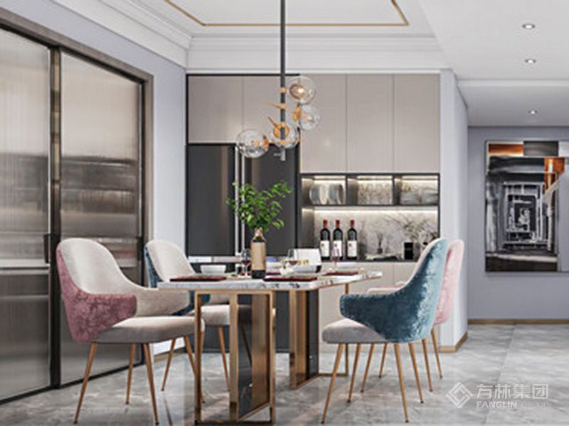 开放式布局拉通区域联动,细节上,造型灯具、软装肌理与景观采光的适配,强化生活质感。