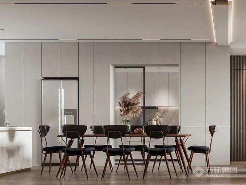 本案以现代简约风格为内核,从餐厅的实用饮食场、客厅的松弛社交域,到卧室的慵懒休憩区,均在简约中融入精致细节,既满足多元生活需求,又以冷静色彩与柔和质感,诠释出“干练与温度共生”的现代简约居家美学。